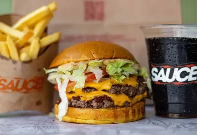 Pão brioche fofinho, burger de 100g, cheddar, cebola picada e o molho SAUCE!